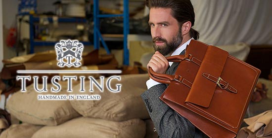 凛とした佇まいに上品さが漂う英国ブランドのタスティング。1875年の創業以来、高級革靴メーカーにレザーを支給しており、1990年からは自社ブランドのバッグ製作を開始。