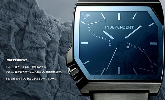 「既成のカタチに囚われない、自由な価値観」をコンセプトに、シャープな雰囲気を持った個性的な腕時計が揃っているインディペンデント。