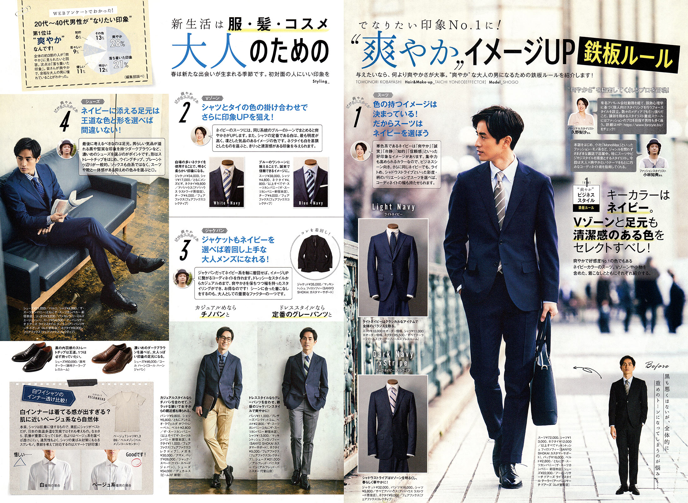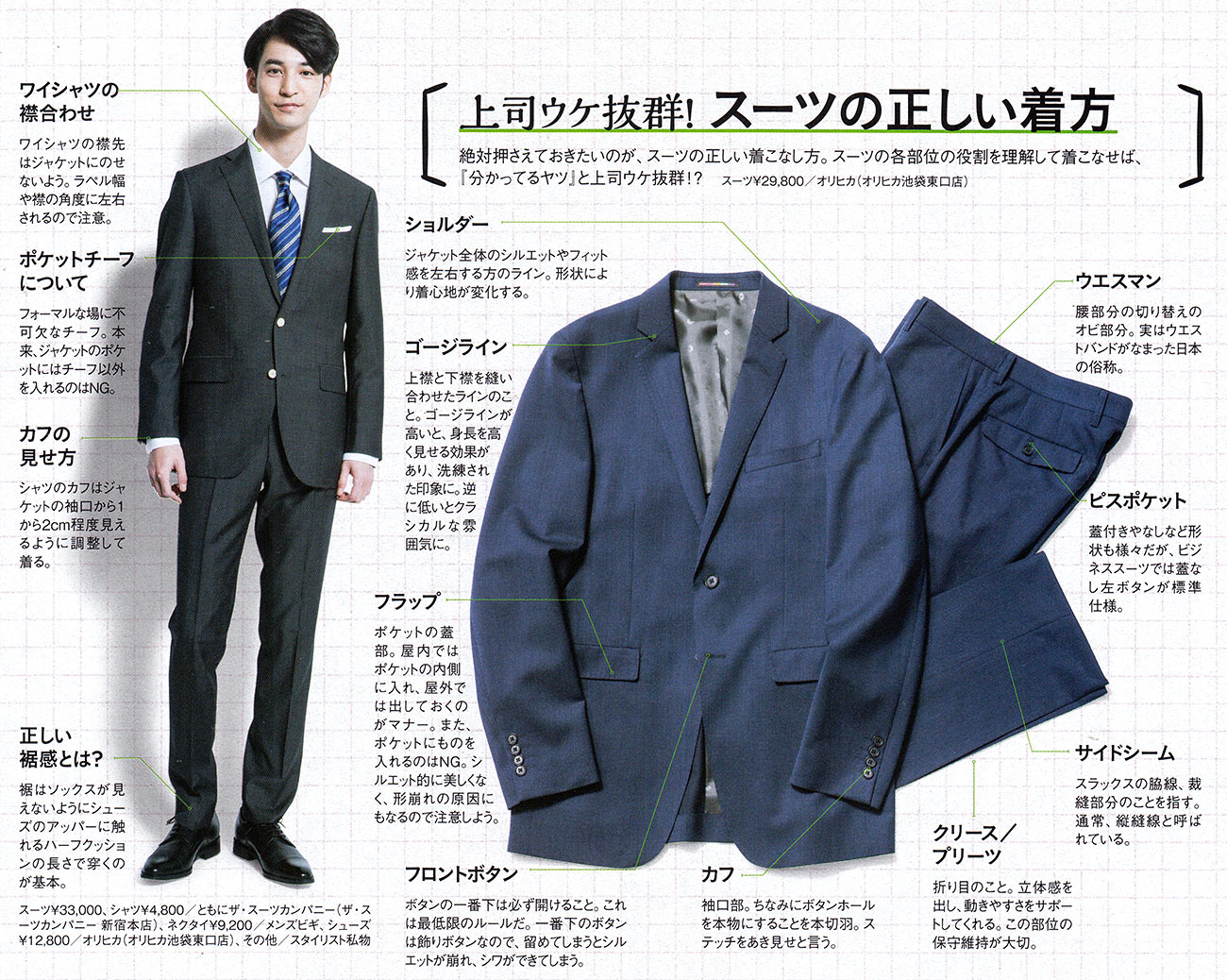 スーツ専門誌、ファッション誌のスーツ特集「本格スーツ大研究、FINE BOYS plus SUIT、MEN’S EX 他」に掲載された新入社員スーツ特集のブランドを元にしました。