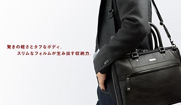 「最高の機能性・パフォーマンスでビジネスマンをサポート」をコンセプトに、機能性に優れたビジネスバッグを展開。