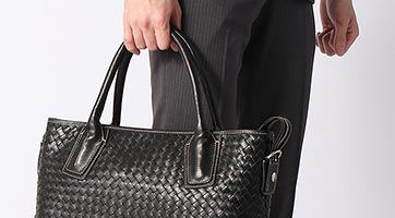 これが3万円以下!? 誰もがそう思う牛革のイントレチャート(レザー編み込み)を施した洒落たビジネスバッグ。