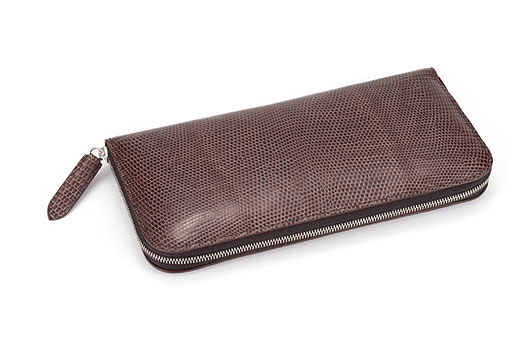 ほどよくワイルドでリッチな「最上級のリザード革」を使用したラウンド長財布。