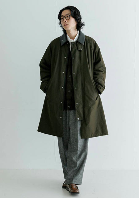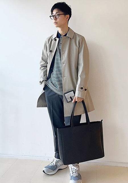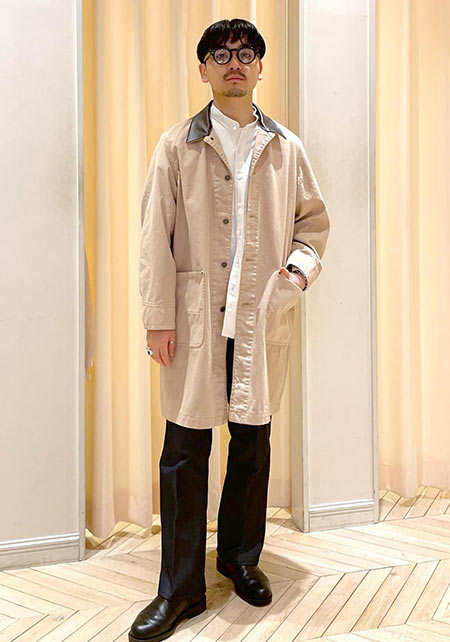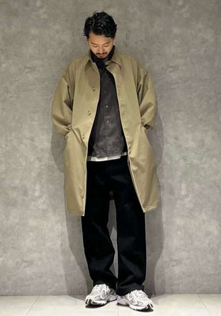 ビジネスもカジュアルも両方で使えるステンカラーコート。