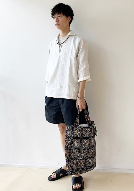 ダボッとしたロンTのシルエットを拾うショーツをチョイス。