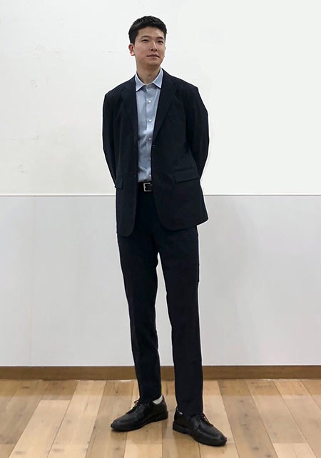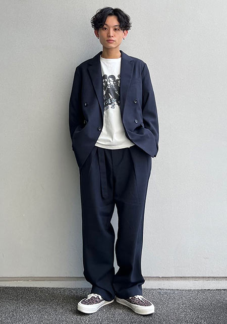 セットアップ1着目に持っておきたい、万能的なネイビーセットアップ。