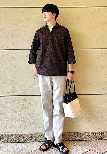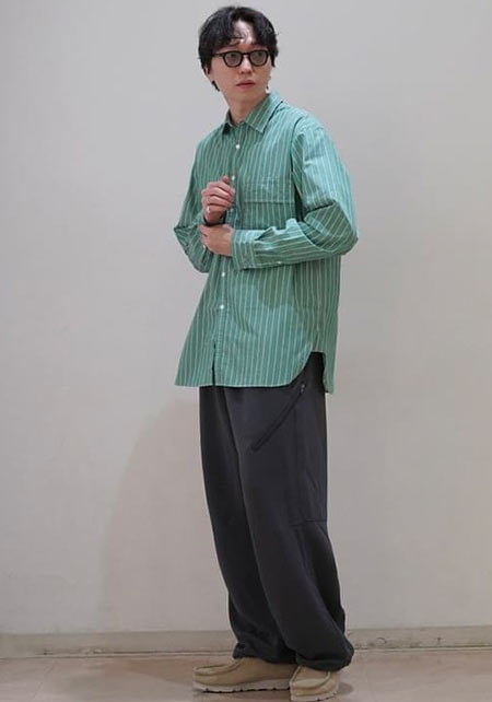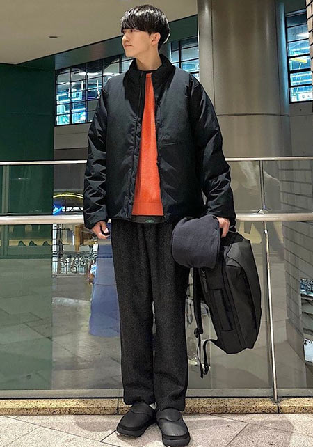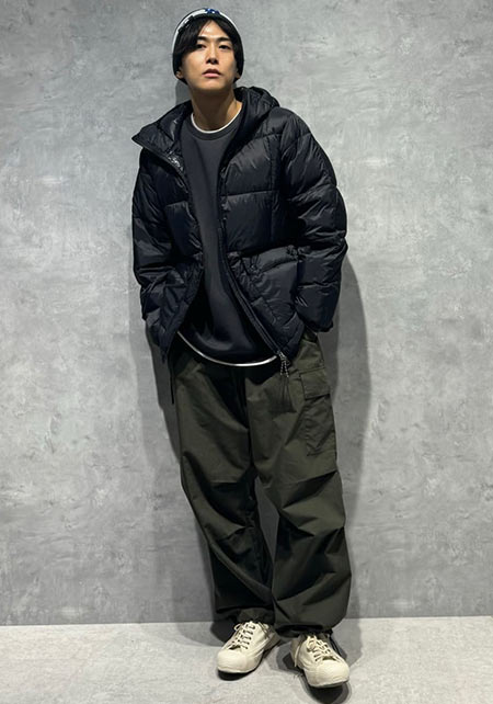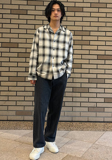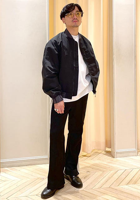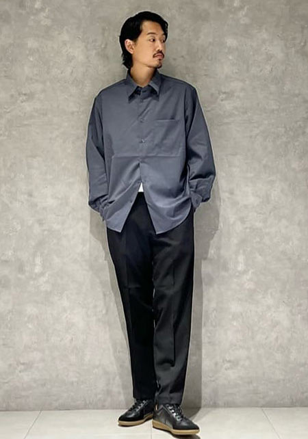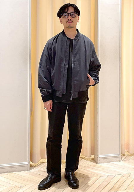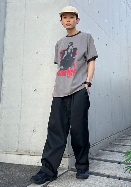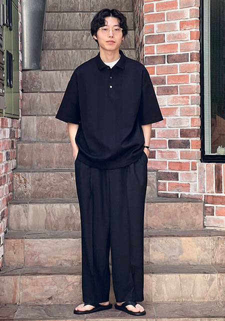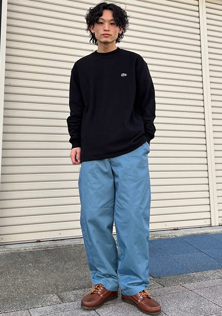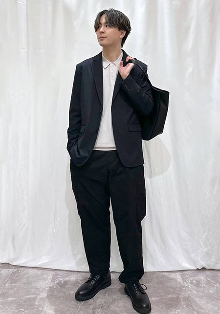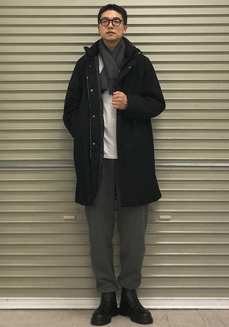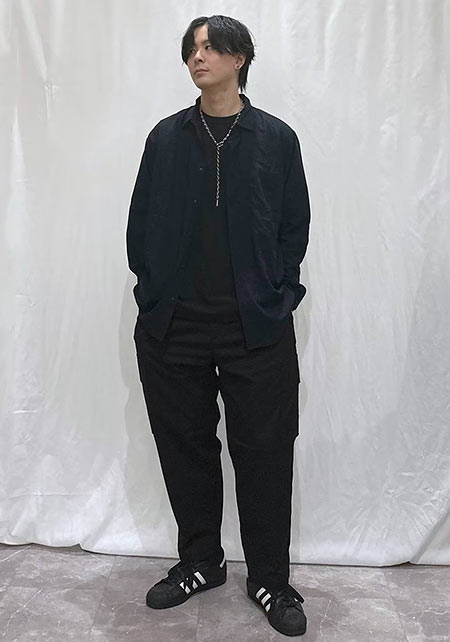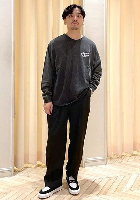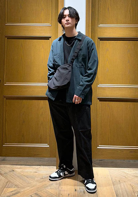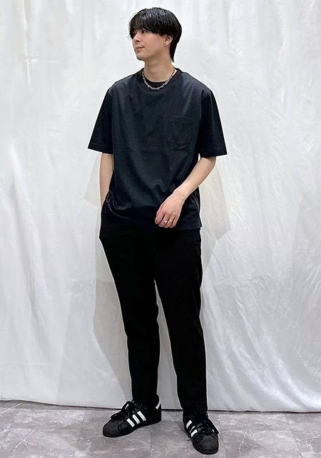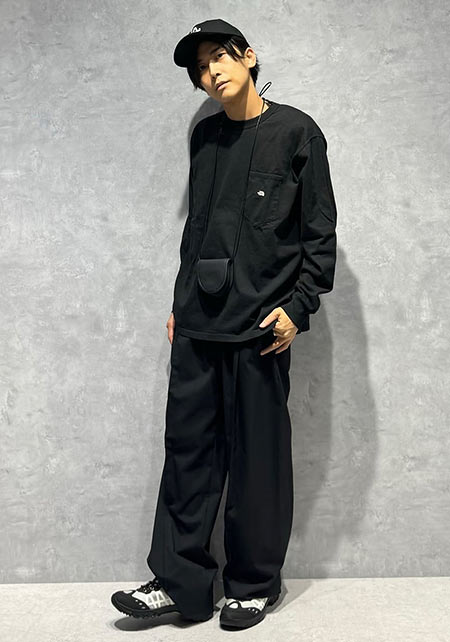kazuoさんは20代前半のスタッフさん。黒パンツを軸にしたベーシックな着こなしを多数発信しています。