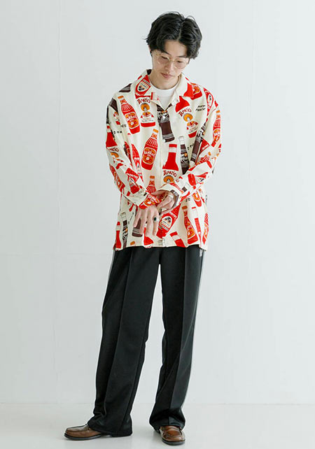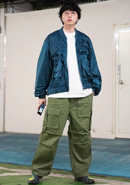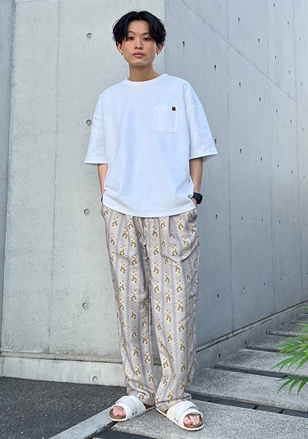 今やどこでも提案されているセットアップの着こなしも、SUDOさんにかかれば一歩先をゆくストリート系に。
