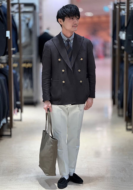 スーツメインのブランドゆえ、ジャケットの仕立てが非常に美しく、着るだけでサマになります。