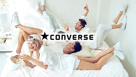 コンバースのキャッチフレーズは「世界シェアNO.1のデイリースニーカー」。1908年、降雪量の多い湿地帯でも使用できるゴム製防水シューズの製造販売を名目に、今日まで継続的に展開される名作オールスターの生産が始まったと言われている。