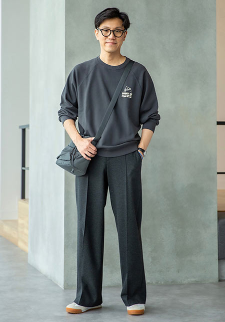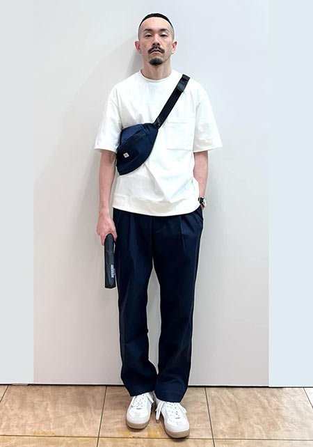 程よいクリーンさのある「リラックスカジュアル」な着こなしを提案しているMIURAさん。