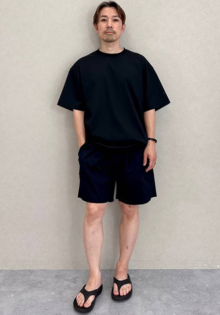 同素材&同色の「プルオーバーシャツ×ショーツ」で仕上げた夏のセットアップ。