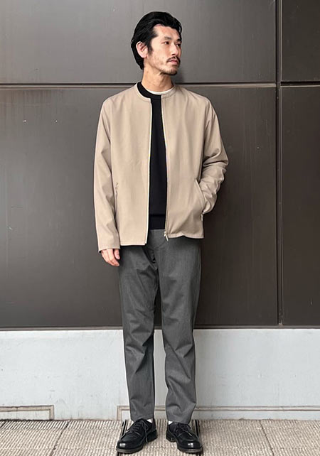 ちなみにインナーをTシャツにしたり、スニーカーにすればよりカジュアル向けになります。