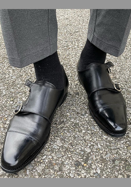 ジョンロブを代表する定番モデルで、考案者ウィリアム・ロブ氏にちなんで名づけられたダブルバックルのモンクシューズ。