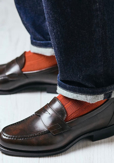 世界三大タンナーの1つである「アノネイ」社製のユニオンボックスカーフを使用したローファー。ブラックは黒味が増した艶、ダークブラウンは深みのある色ムラが持ち味。