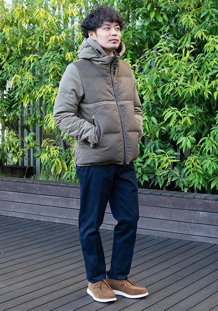 鮮やかなブラウンカラーはカジュアルなスタイリングにも似合う。構造はハンドソーンのグッドイヤーウェルトで、出し縫いのみマシンメイドの「9部仕立て」。