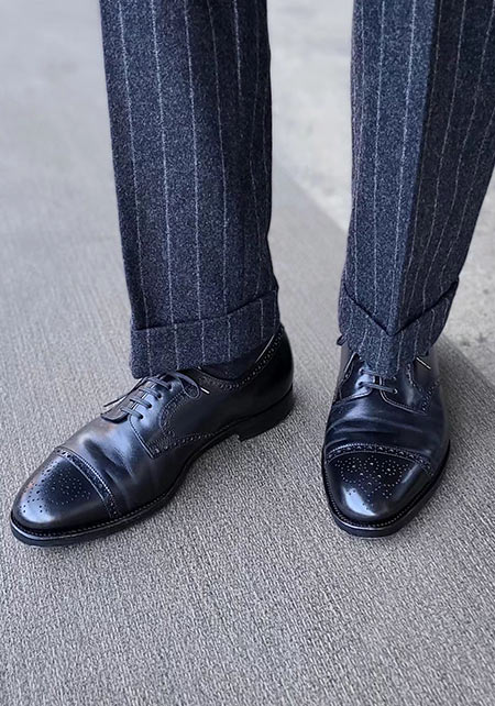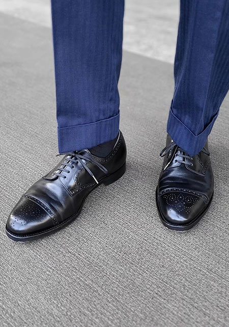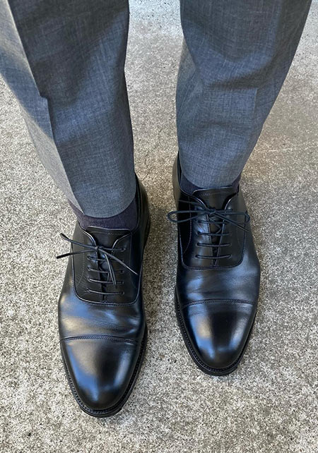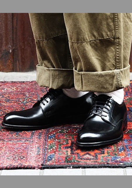 日本人男性の足型に合わせたシンプルなキャップトゥシューズ。