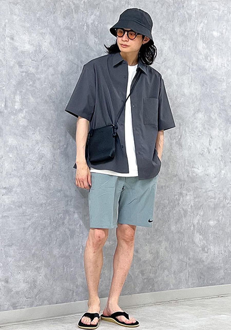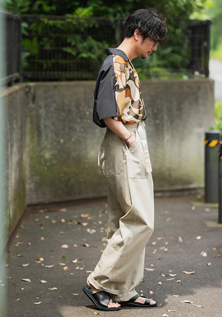 肉厚なシボ革を使用したシャワーサンダル。ライトな見た目ながらも無骨で男らしい雰囲気を漂わせる”オトナの男”がマッチする仕上がり。