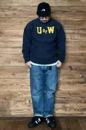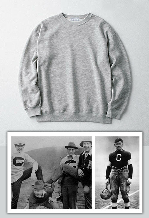 スウェット素材が誕生する1930年代頃まで、学校や軍で使用されるアスレチックウェアといえば、ウール製のハイゲージニットを縮絨加工で仕上げたものが大半であった。いわばスウェットの雛形でもある、それら初期のニットウェアたちは、1920年に米軍アカデミーの訓練用として、続く1924年にはミシガン大学の公式アスレチックウェアに採用され、いわゆるユニフォームとしての色合いを徐々に高めていく。