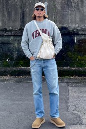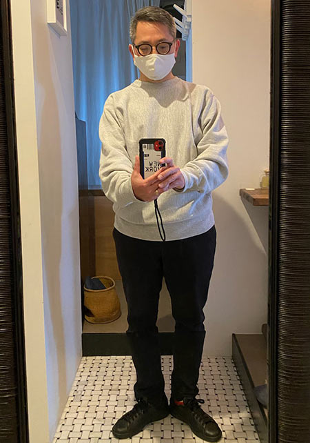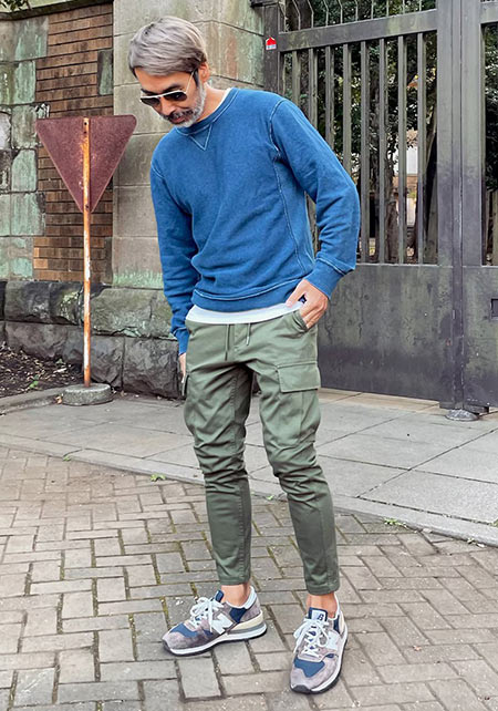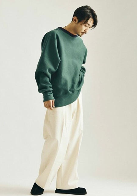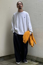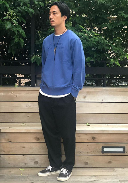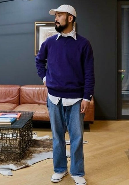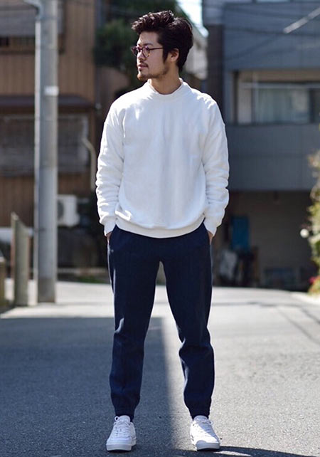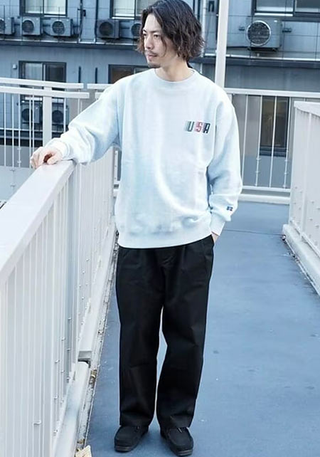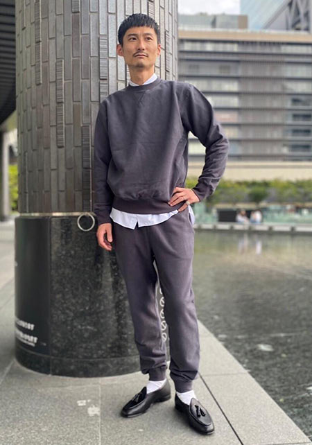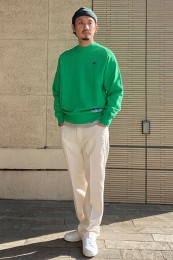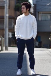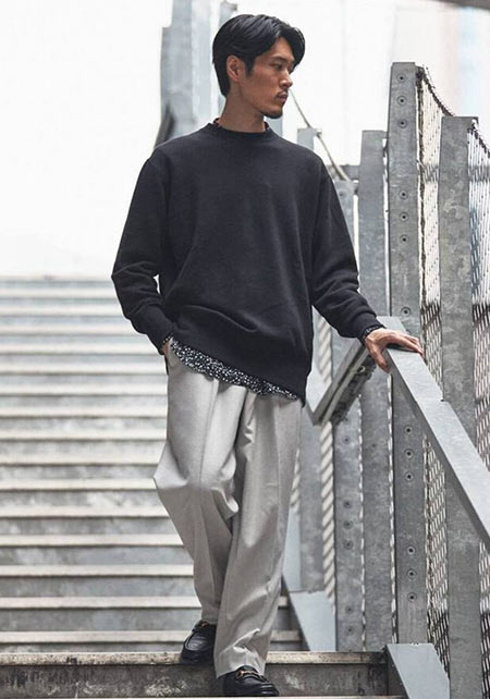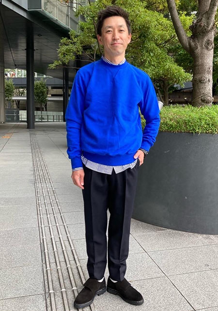 カジュアルファッションの定番アイコンとなった現在、襟つきのシャツを中に合わせるなど、上品なアイテムとの組み合わせが大人としてのスウェット使いの基本となっている。