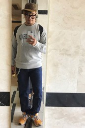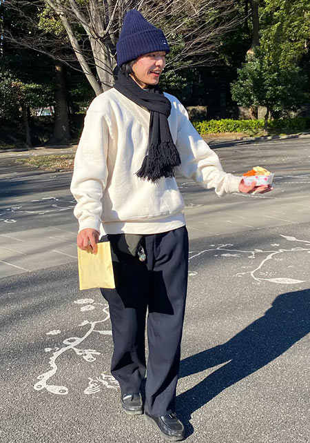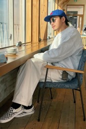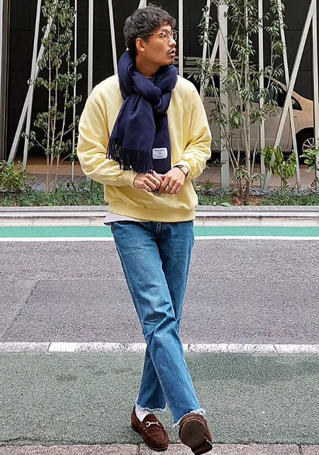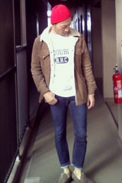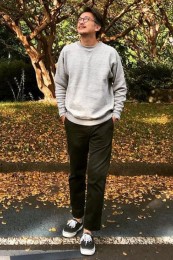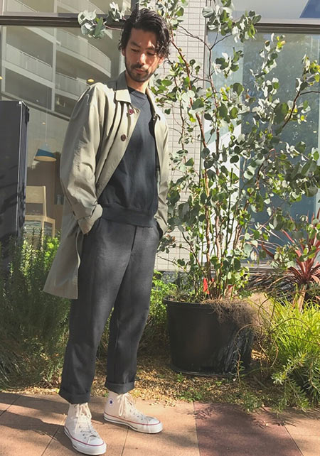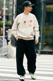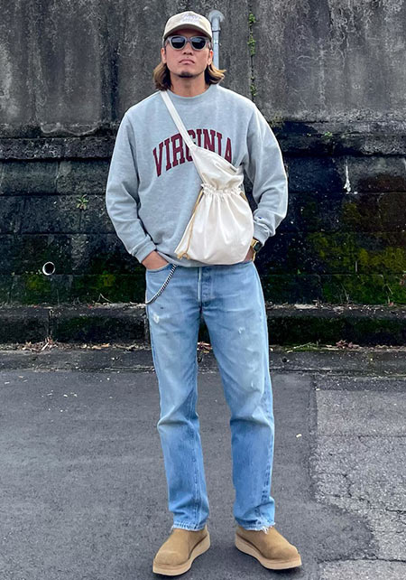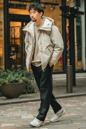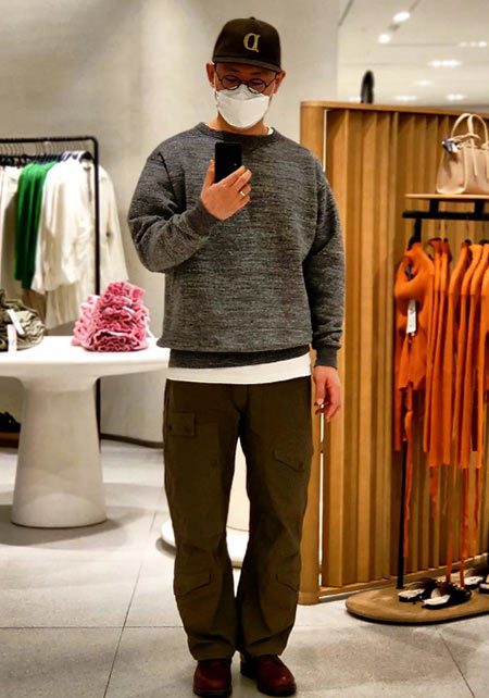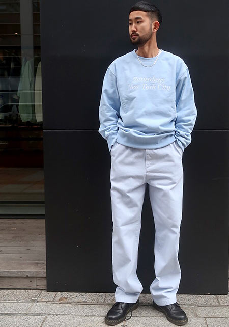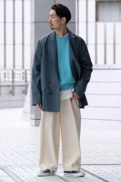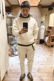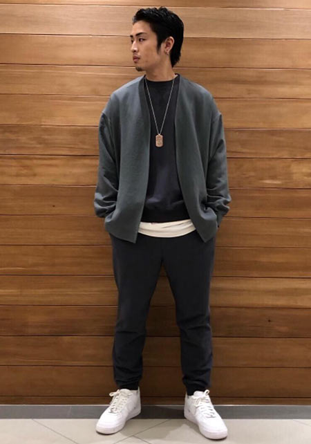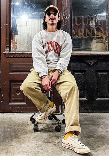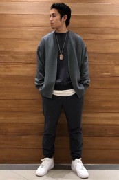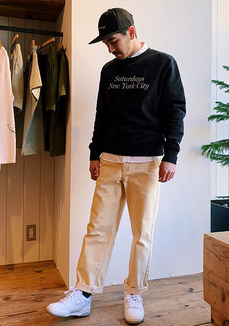 カジュアルファッションの定番アイコンとなった現在、襟つきのシャツを中に合わせるなど、上品なアイテムとの組み合わせが大人としてのスウェット使いの基本となっている。