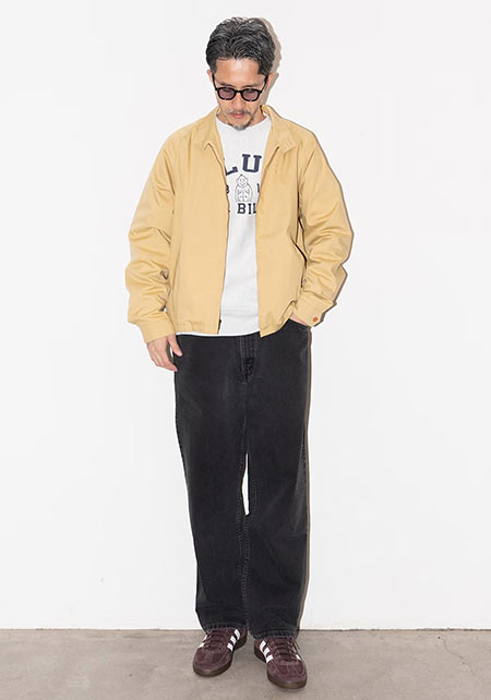 ボディとリブのカラーが異なるパターンで、古着市場でも人気。同色部材が揃わず異なる色味のパーツを組み合わせたことに端を発する。