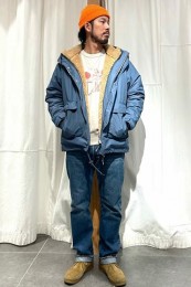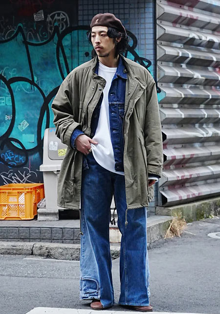 袖や裾、ネック部分に伸治性に富んだ生地を切り返してヨレにくくしたもの。ヴィンテージ風のアイテムであればニット風に軽く編むなど、アイテムごとの個性が反映されるポイント。リプのみカラーを変えたものをリンガーと呼ぶ。