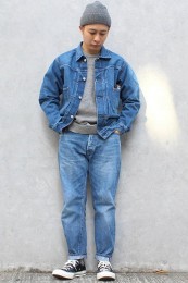 糸2本による縫製方法。リバースウーィーブのサーイドリブが、2本針縫製なら1950年代以前、4本針なら1950年代以降と判別することができる。