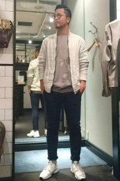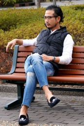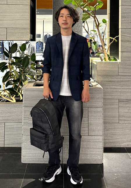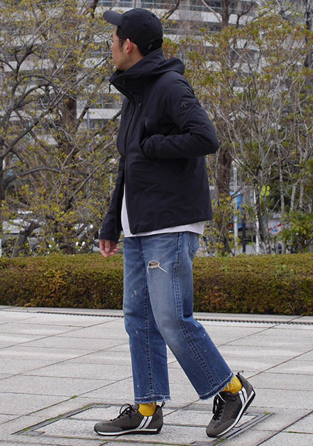 シルエットは細身だが、ストレッチが十分に効いているから動きやすく、リラックスしてはける。