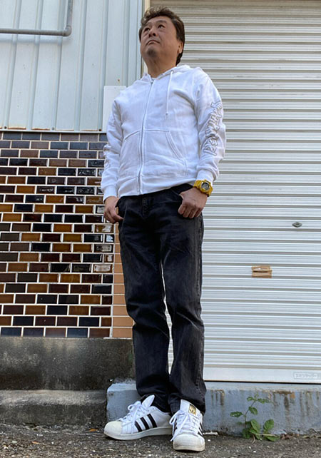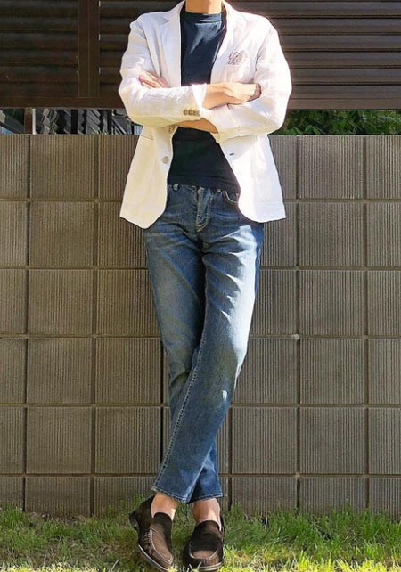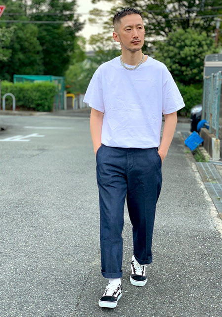 これが おやじ世代デザイナー、三原康裕がさんの考える「大人の白ジーンズ」。