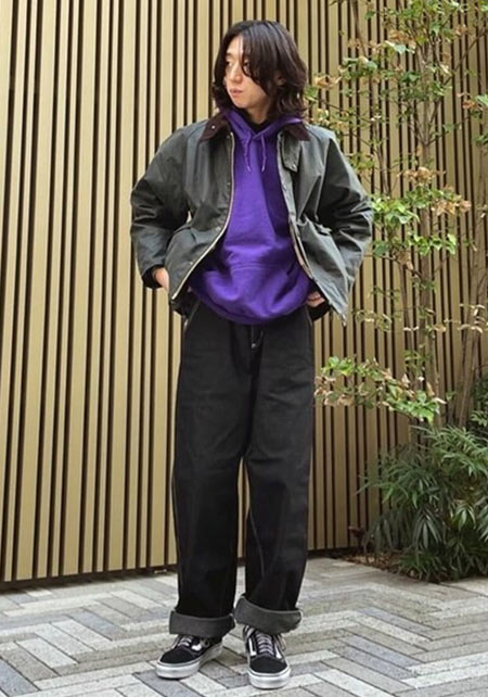 はくだけで着こなしがシックにまとまり、モードからカジュアルまでカバーする黒。