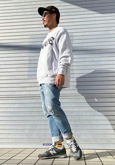 ゆったりとしたテーパードシルエットと、ハードな色落ちが特徴。レングスの設定も絶妙。