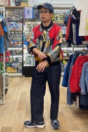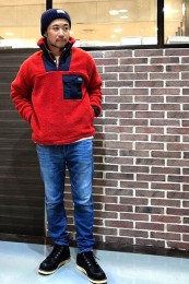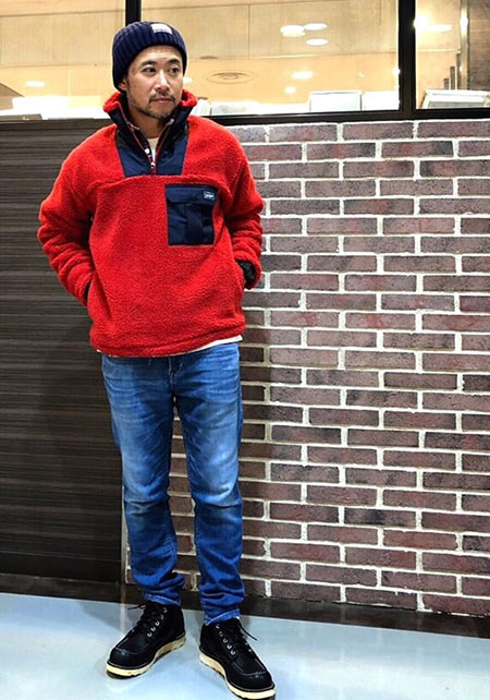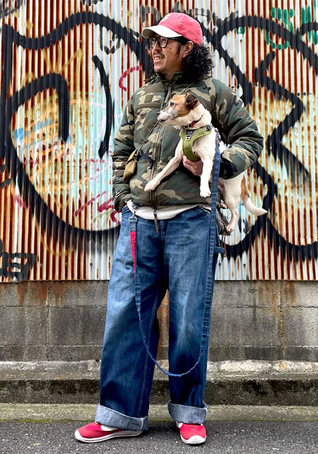 合わせる服を選ばない定番テーパードで、コインポケットに白×赤の耳をあしらうなど遊び心満点。