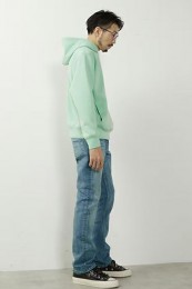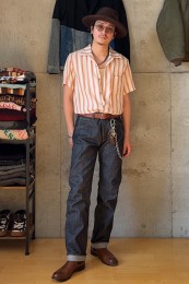 ジップフライやプリシュランクデニムの採用など、随所に東海岸的スタイリッシュさを感じる一本。