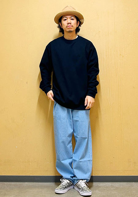 ゆとりあるシルエットが流行の今、それに寄せた一本です。