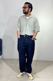デザインは上品な見ためを大切にしたタイトなテーパード。明るいインディゴカラーは、春夏のジーンズ×革靴というスタイルを連想させる。
