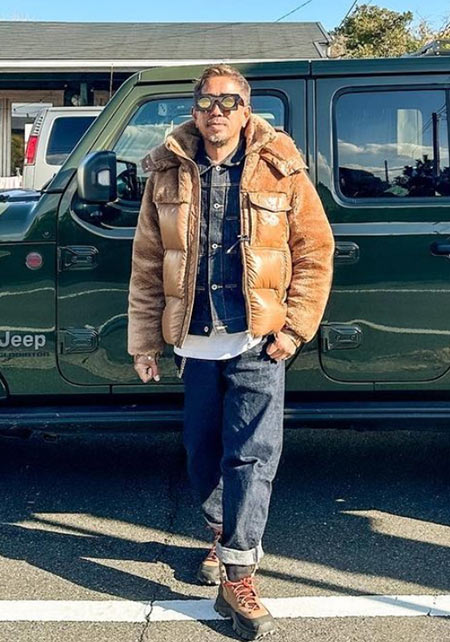 M65をイメージさせる胸ポケットを2つ付け男らしく上げたダウンジャケット。
