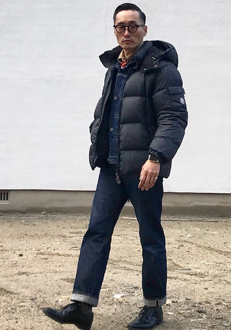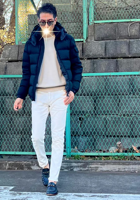 モンクレールのダウンジャケット×40代・50代向けコーデ