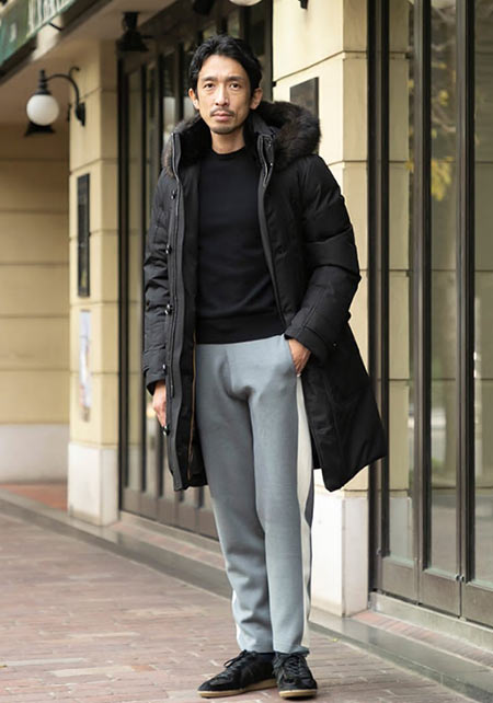 ややゆとりのあるシルエットなのでスーツやジャケットの上から羽織っても余裕があり、冬の通勤アウターとしても使えます。