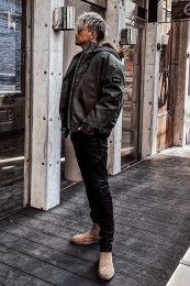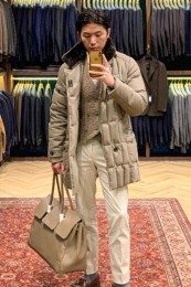 HERNOらしいスタイリッシュなシルエットは上品かつモダンであり、N-3Bをルーツとしたミリタリーな香りは男性の力強さを感じさせます。