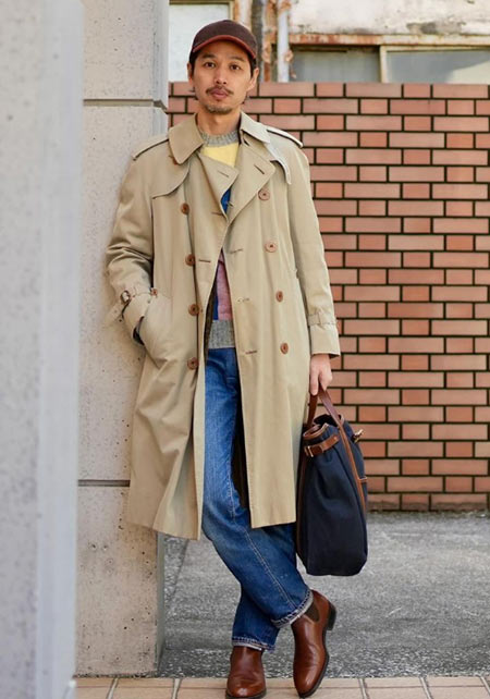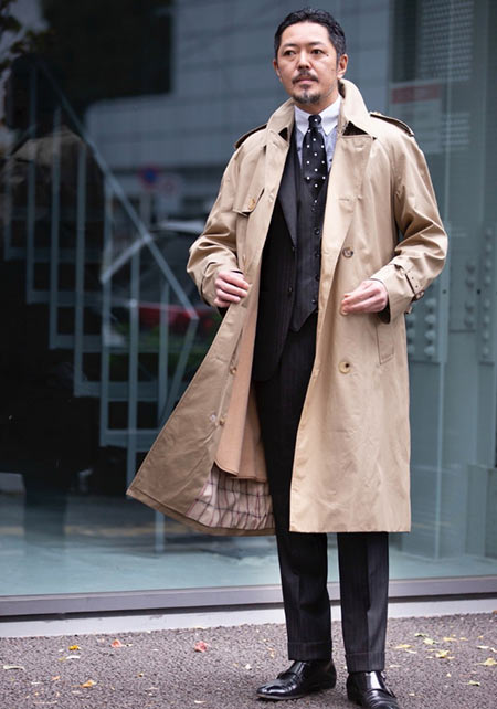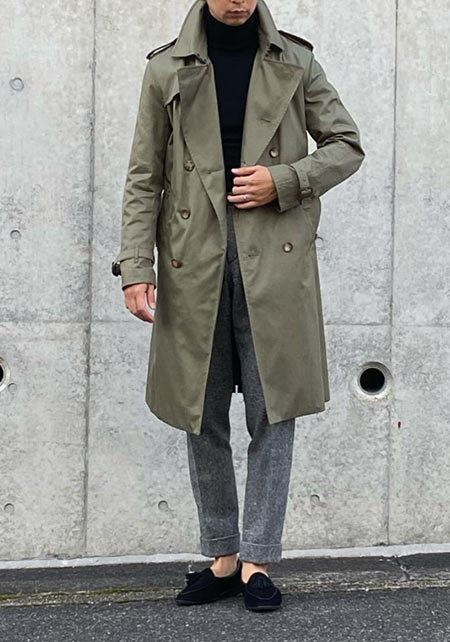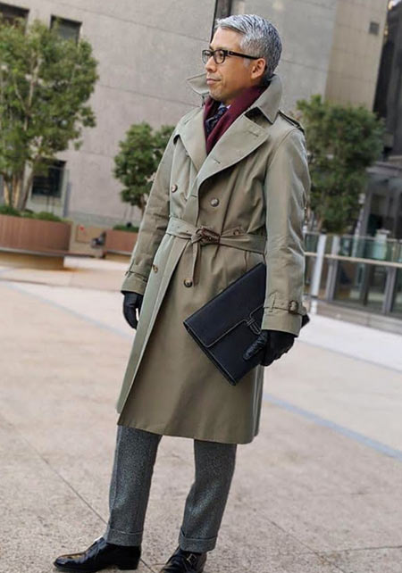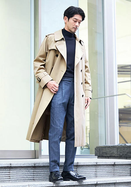 どこかハードボイルドな雰囲気が漂い、シブみを身につけたオヤジさんほど似合うトレンチコート。