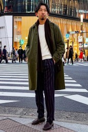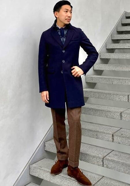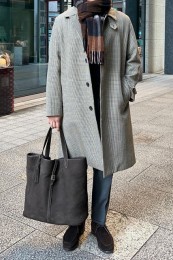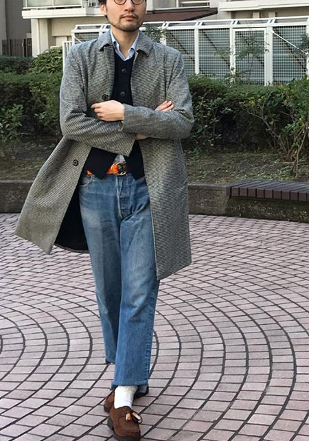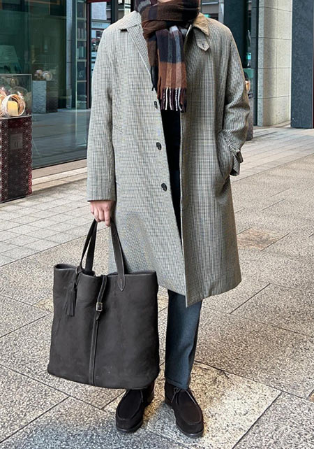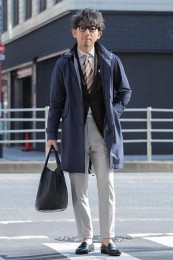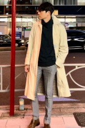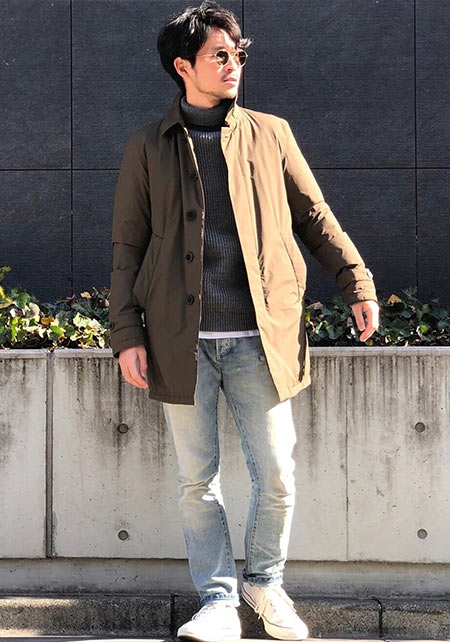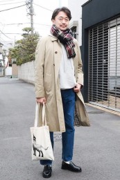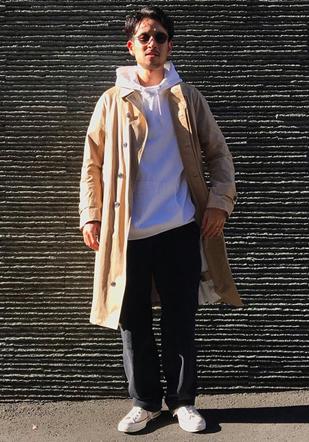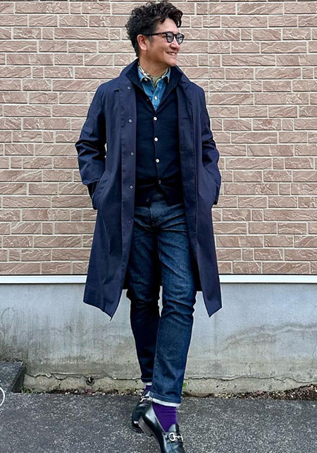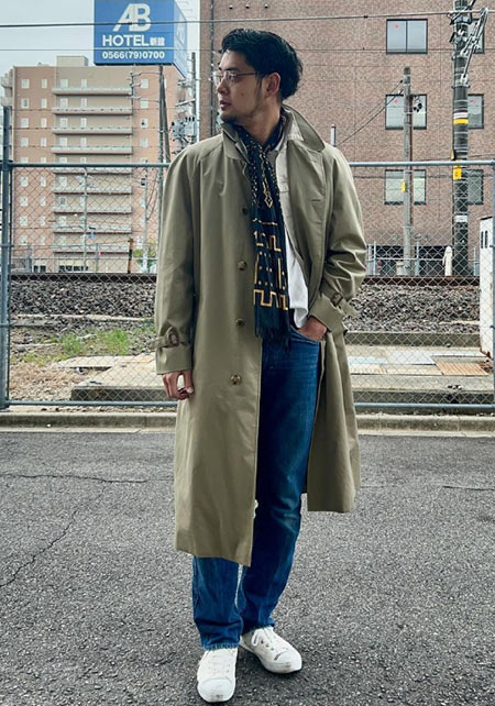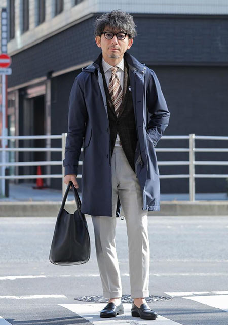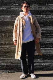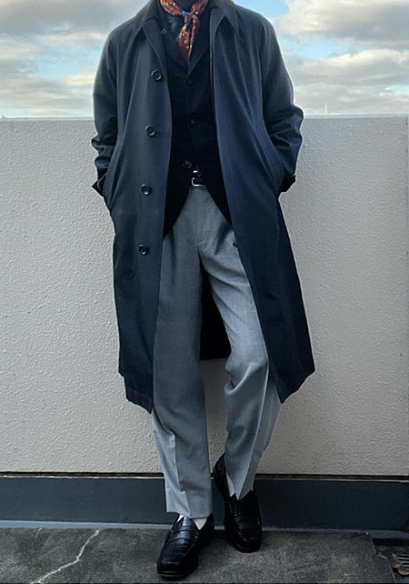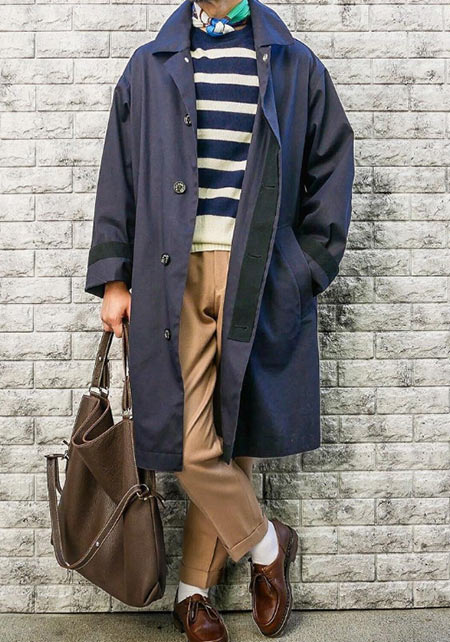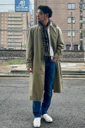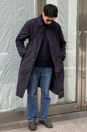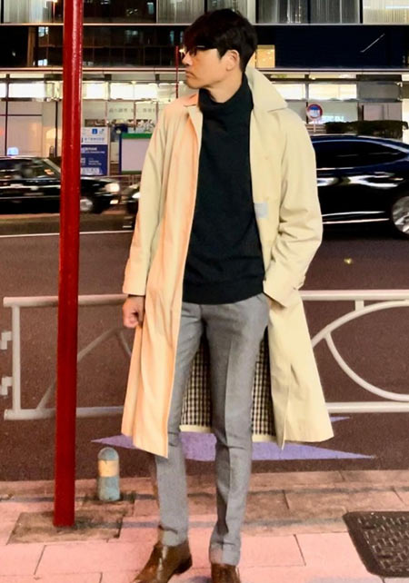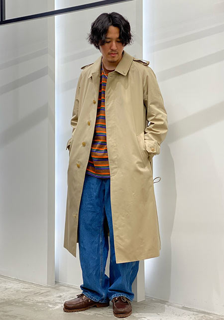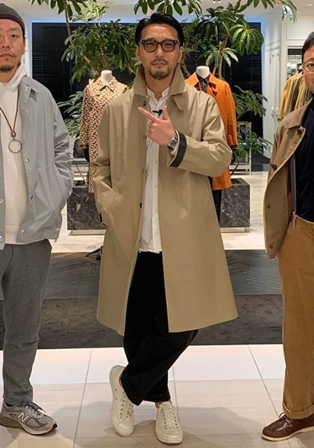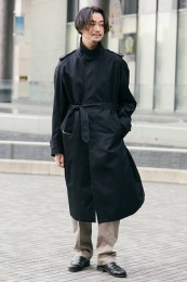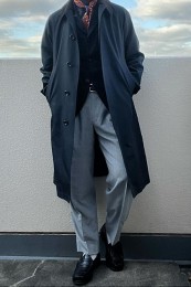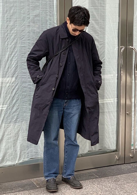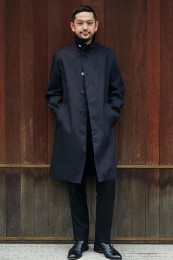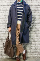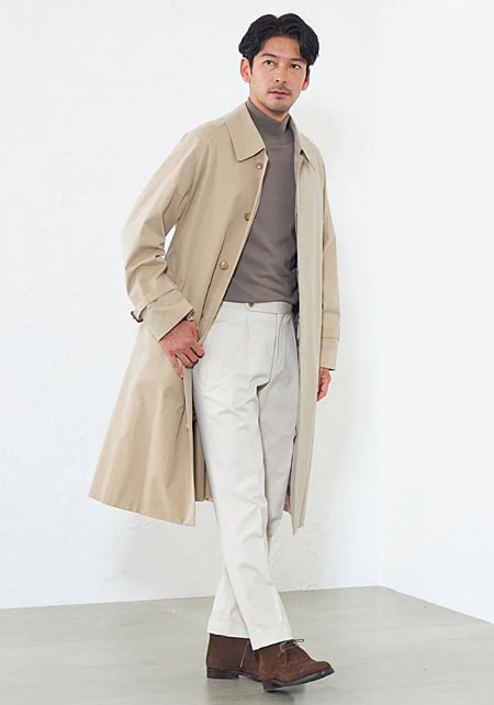 日本でもアウターの定番、ビジネスマン愛用のコートとして認知されており「オン・オフ兼用」しやすいステンカラー。