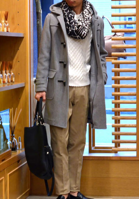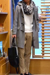 トグルボタンの下にファスナーを配したほか、袖口にリブを装備するなど機能的にもデザイン的にもヒネリを利かせたダッフル。生地もウール90%+カシミア10%と、サイらしい贅沢仕様。