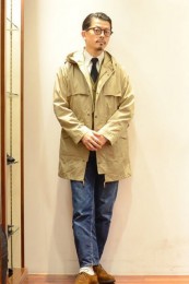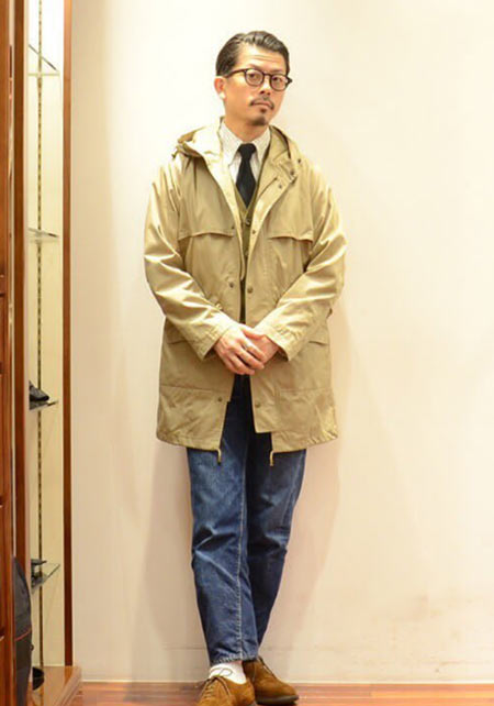 M-51型ミリタリーコートをベースにした、通称モッズコートと呼ばれるフーデッドコート。