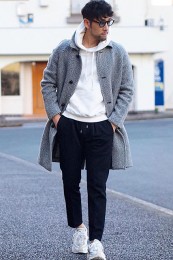 今どきのベーシックカジュアルにも◎なフード付きコート。