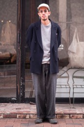 全体の機微はしなやかな手触りのウールですが、パッチポケットはモールスキンの別布で表現。袖に裏地が付いたダブルフェイス仕様でかつドロップショルダーで、イージーに着こなせる一着です。