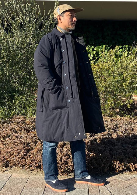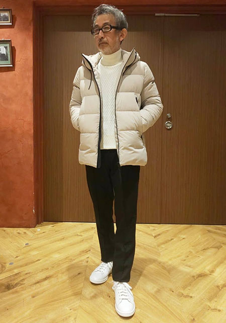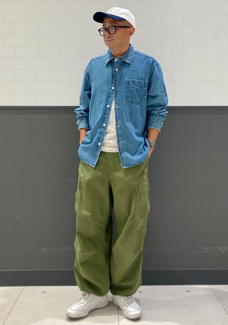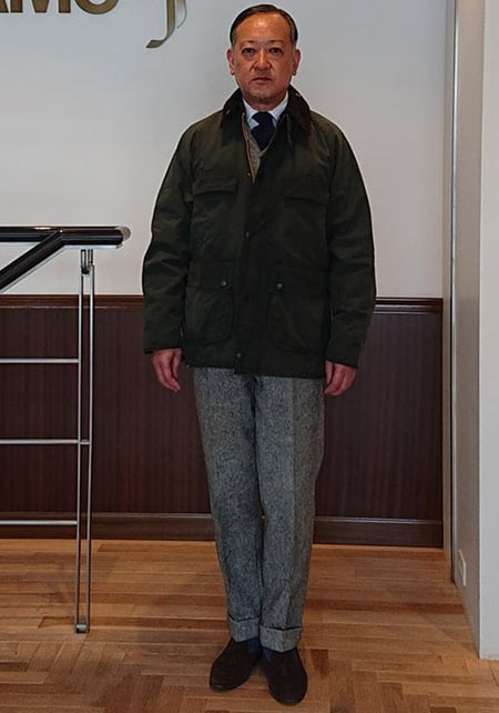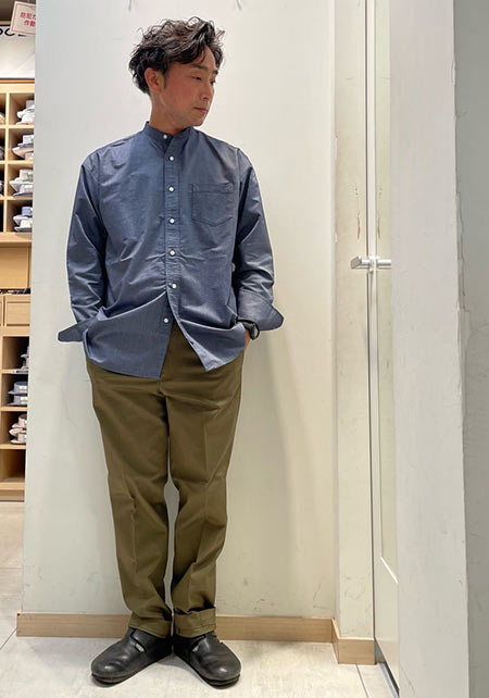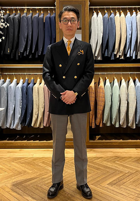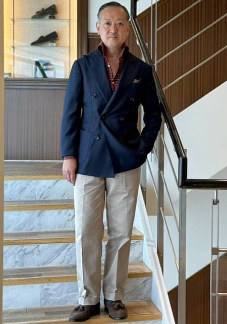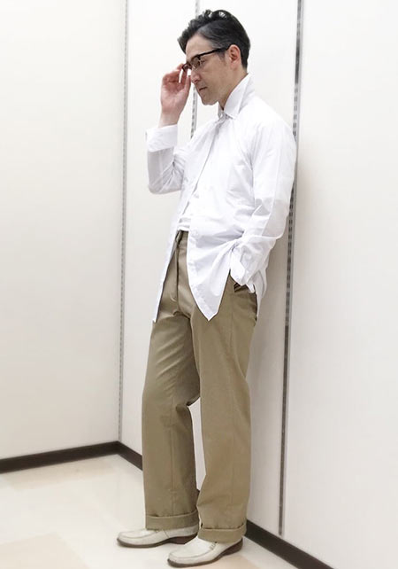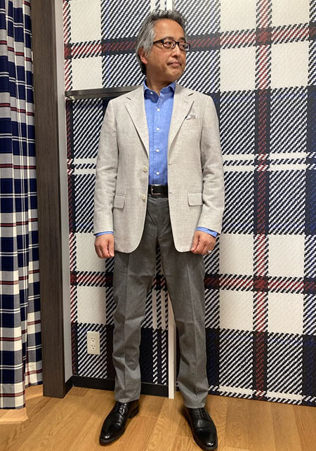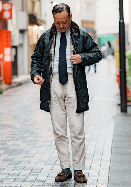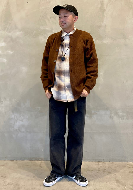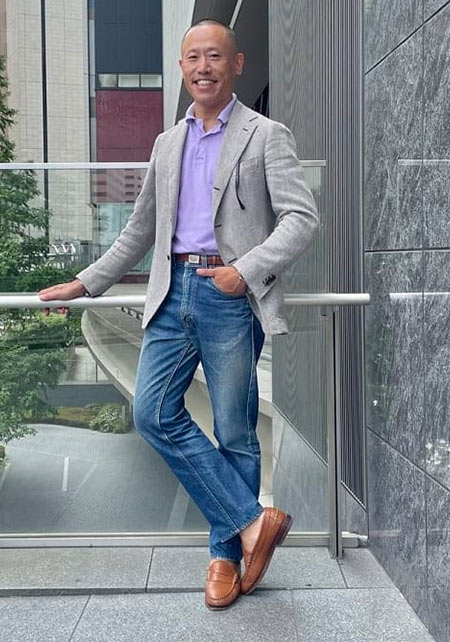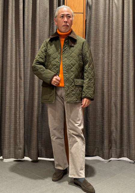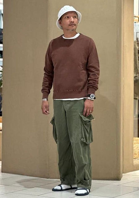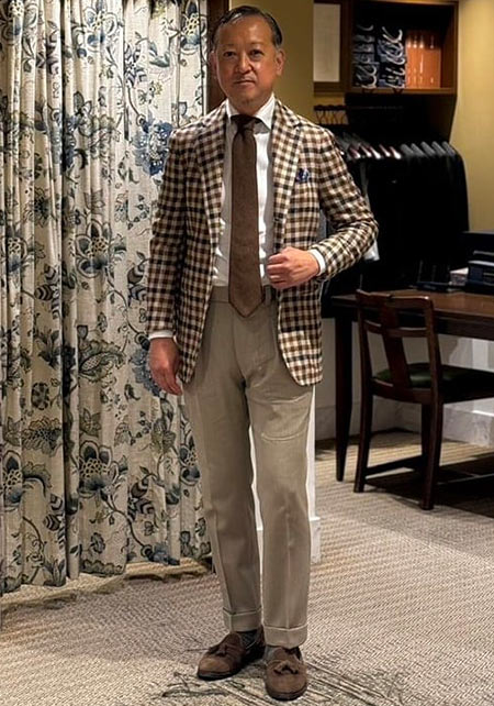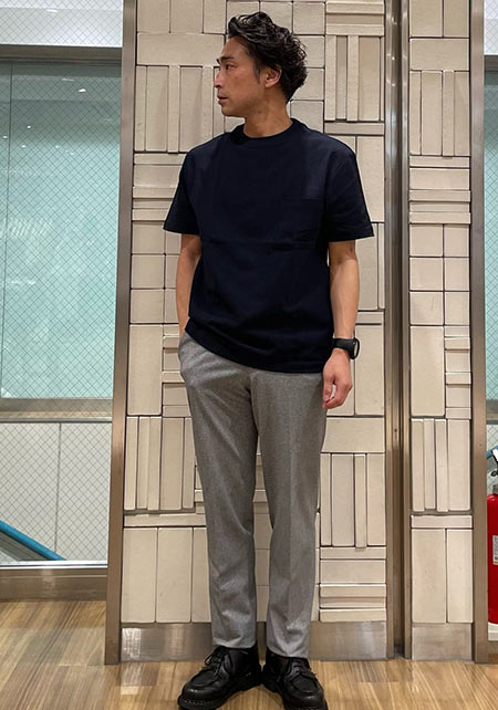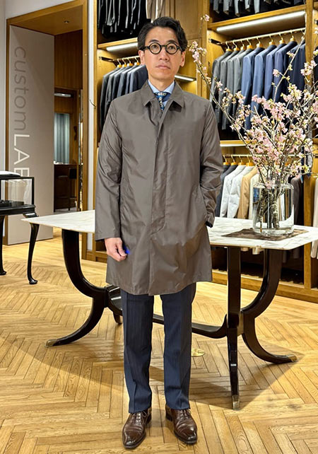 オオヒラさんは同ブランド勤続30年のベテランで、トラッドカジュアルな着こなしを提案しています。