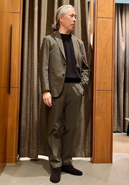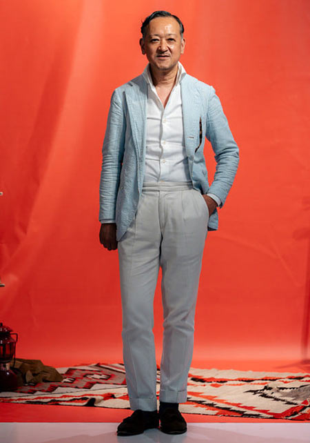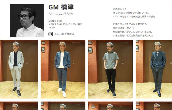 メンズビギスタッフ内で最年長の「GM 橋津」さんは、“昭和男の令和スタイル”を提案。