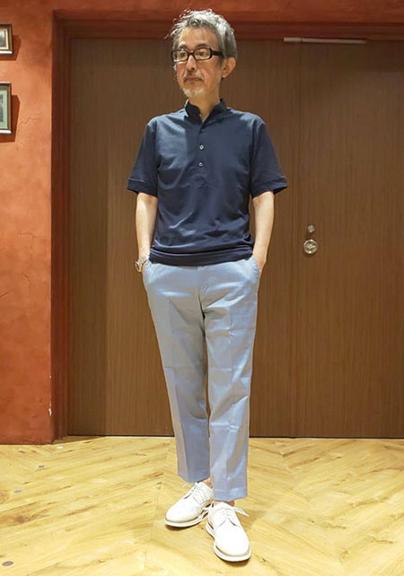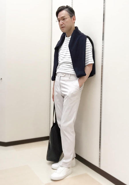 こちらも白パンを合わせてイタリア流な着こなしに。