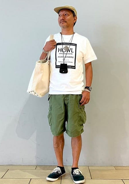 ニット帽、ブレスレット、スリッポンなど、雰囲気の出るアイテムを加えることで、差のつきにくい夏服をオシャレに昇華。