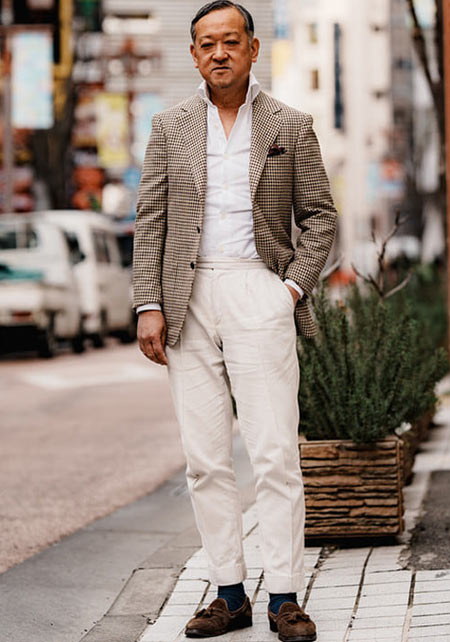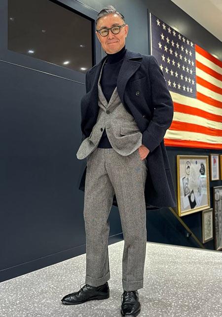 紳士的なスタイルはもちろんのこと、「少し着崩した」50代らしい着こなしは唯一無二。